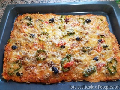 Un cop ben amassat, ho deixem dins el vol tapat amb film de plàstic, fins que la massa es dobli (depen de la temperatura ambient entre 2 i tres hores). Posteriorment dividim en dues boles la massa, les tornem a amassar amb una mica de farina. Per cada bola és pot fer una pizza rectangular de la mida d'una safata de forn (els ingredients que indico son per fer 1 pizza).