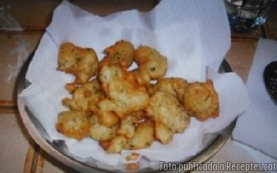 El sistema es agafant una cullera i anem prenent de la barreja que hem preparat i anem posant a la paella a fregir fins que ens quedin uns bunyols rossos