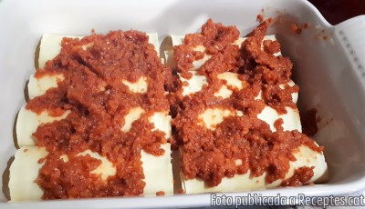 Cobriu els canelons amb la salsa de tomàquet.