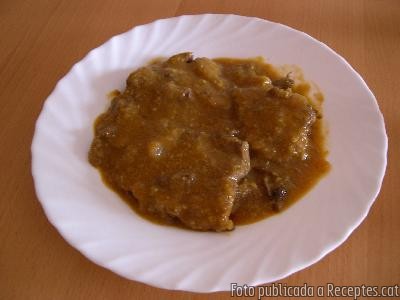 Salpebrar els talls de carn, enfarinar i fregir en una paella. Reservar en una cassola.