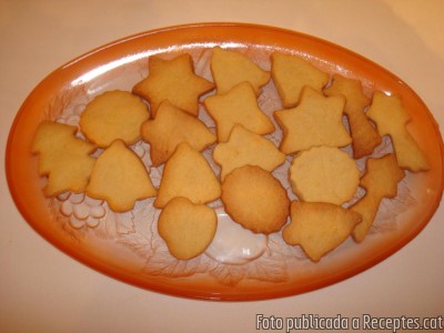 S'estira la massa amb un rodet i es retalla amb els motllos de diferents formes, es coloquen en una safata per forn i es couen entre 15 a 20 min. a 180-200º depenent del forn.