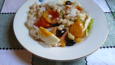 Amb la calor dels últims dies d'estiu segueixen agradan coses fresquetes, com aquesta gustosa amanida, en lloc de amb marisc, amb mongetes.