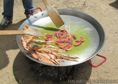 - Saltegem els escamarlans i gambes fresquíssimes, 1 minut i es retiren.