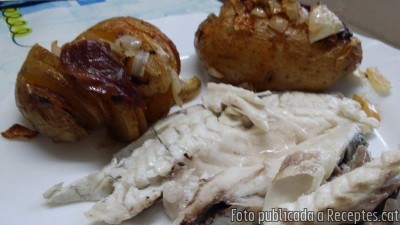 Quan es treuen s'hi tira pebre vermell picant per sobre. Enfornem els llobarros a 220 º durant 20 minuts, sense obrir el forn en cap moment, i amb el forn posició = .